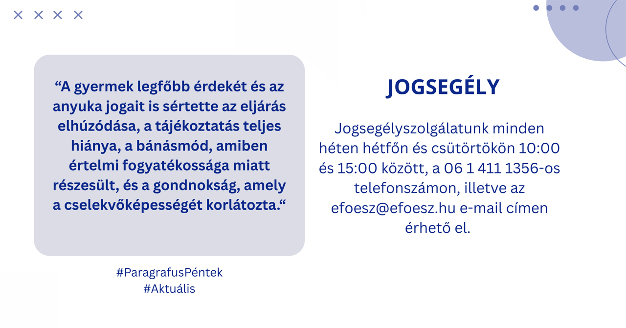 2023 januárjában egy alacsony támogatási szükségletű, fogyatékossággal élő édesanya fordult jogsegélyszolgálatunkhoz. Nem sokkal korábban adott életet gyermekének,...